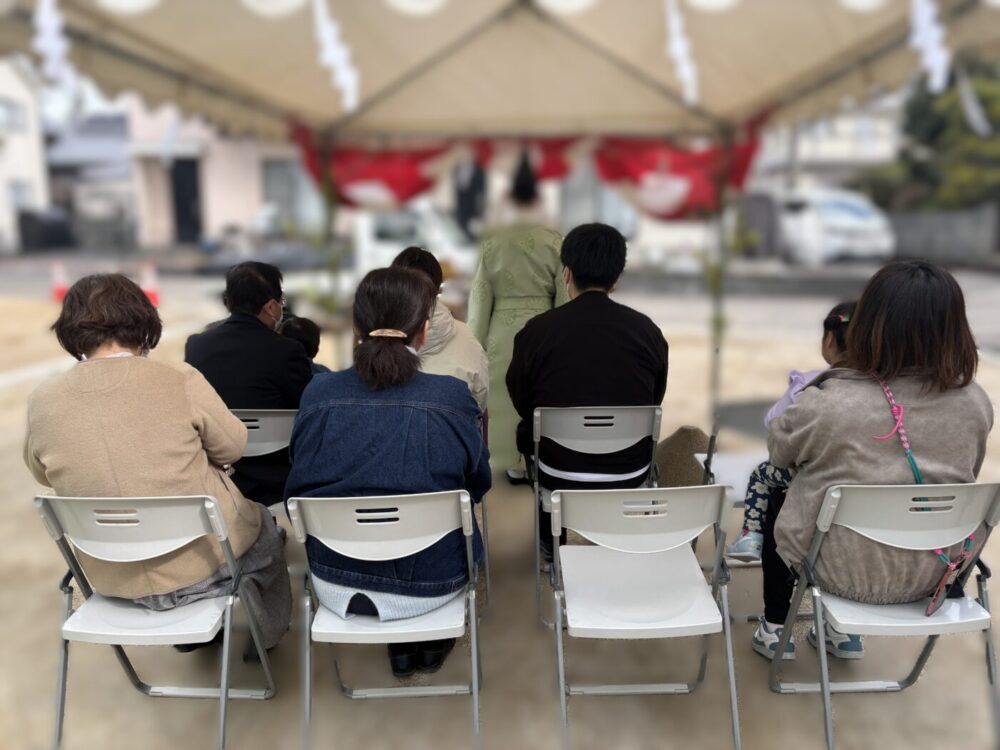 2026年3月吉日『coji cojiのすむ家』地鎮祭を執り行わせていただきました!気温がグッと下がり寒さが戻った日でしたが・・・ご家族様もご参列いただき、賑やかな温かい地鎮祭になりました!