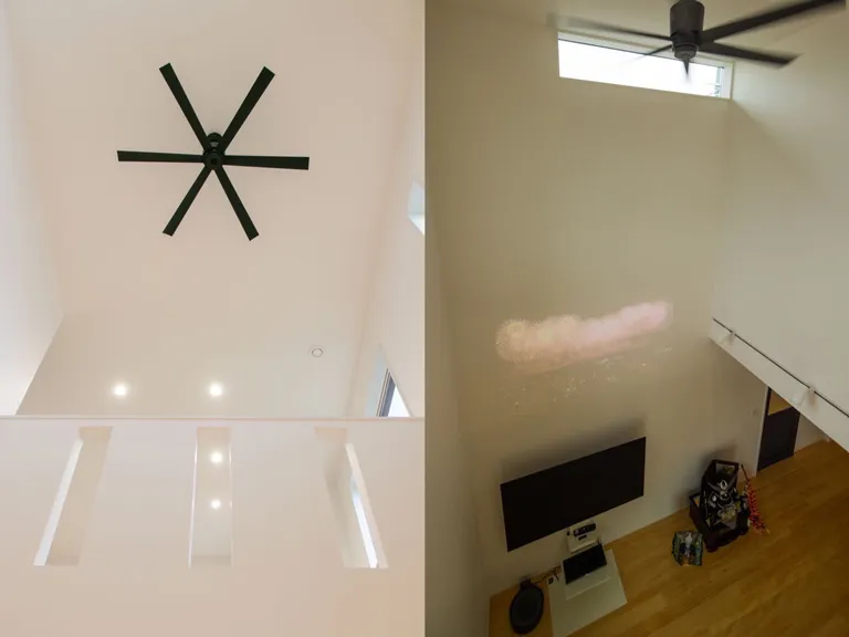 扉を開けた瞬間、天井から足元まで広がる豊かな木の質感に心が安らぐ玄関です。建具や収納、天井の木目を同系色で統一することで、コンパクトながらも奥行きを感じる洗練されたエントランスに仕上げました。リビングへと続く扉には、プライバシーを守りつつ光を通すストライプガラスを採用。柔らかな光が差し込む、お家の「顔」にふさわしい上質な空間です。