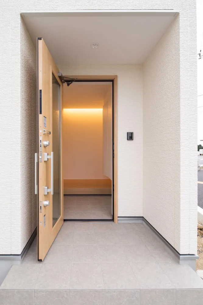 木の温もりに包まれて。素材の統一感が美しい、おもてなしの玄関空間