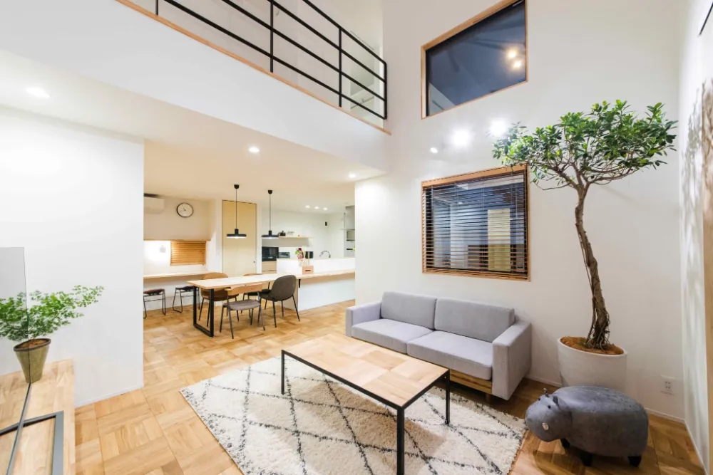 おしゃれで開放感のある吹抜けと外からの視線を遮る中庭のある家