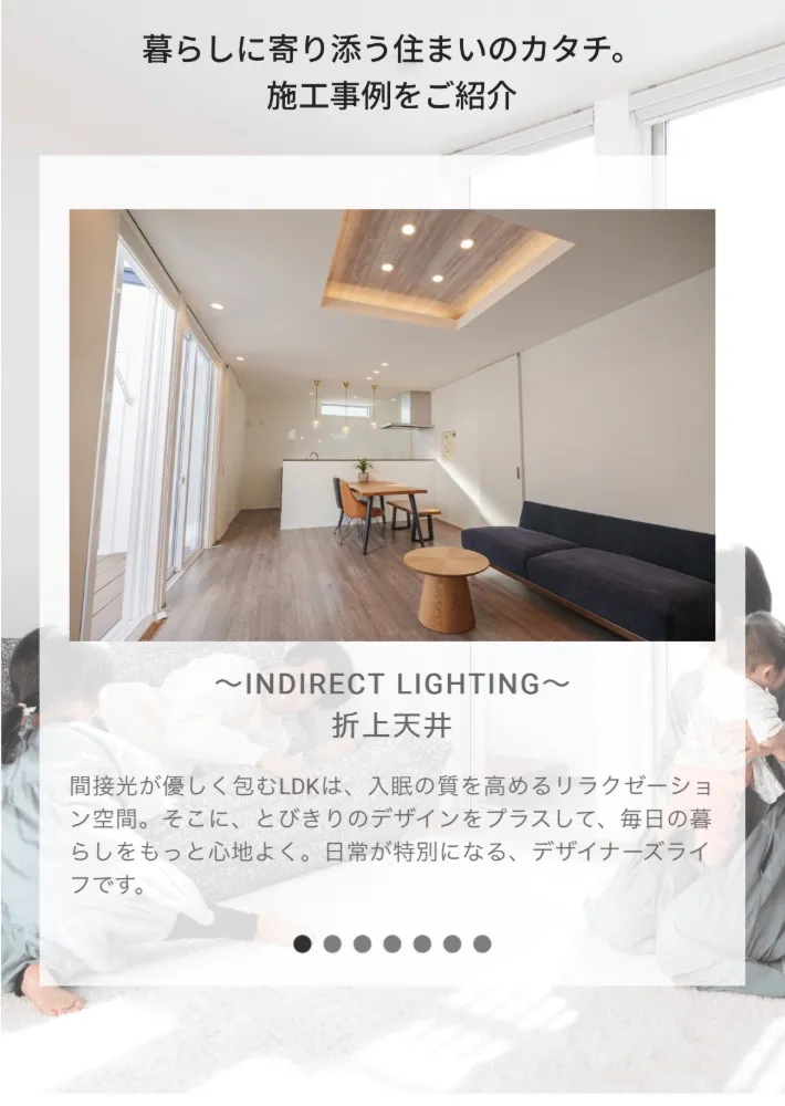 私はこの松山市で父親から継いだこの建築を愛しています。 大手ハウスメーカーや大手ビルダーの お家も立派だと思われるかもしれないけど、実は数もたくさんやらないといけない 大きい会社っていうのは家づくりがドンドン、インスタントになって、 隅々まで思いの込めた丁寧な家づくりができなくなってしまう。 だから私は小さい規模で、限られた棟数をじっくりと作っていきたい。 だからこの規模というものをこれからも守っていこうと思っています。 性能もデザインも間取りも、スーツで言ったら大手大量販売店のスーツでなくて、 町の仕立て屋さんのような生地からデザインから全てその人だけのものを作る そういった街の仕立て屋さんのような工務店でありたいと思っています。 是非、地元密着で一緒に人生を、家づくりをした会社といきていきたい。 そしてどこよりも繊細で丁寧な家づくり、これを望んでいる方は私に家づくりのご相談をしてください。