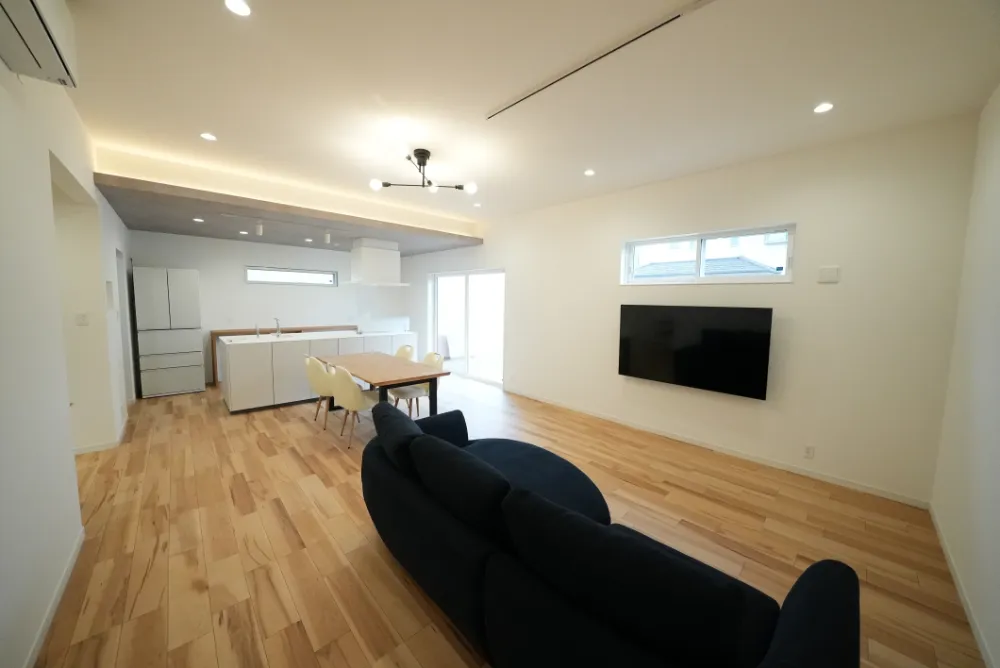 テレビを掛ける壁には装飾と間接照明を設置しました。