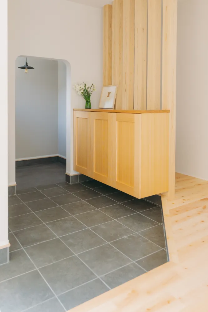 家に入ると広がる玄関土間。来客を迎えたり、趣味の道具を置いたり。暮らし方の幅を広げてくれる空間です。また、約1.5帖の趣味室は、小さくても自分だけの場所。読書、手仕事、ちょっとした作業など、好きな時間に没頭できるおこもり空間です。